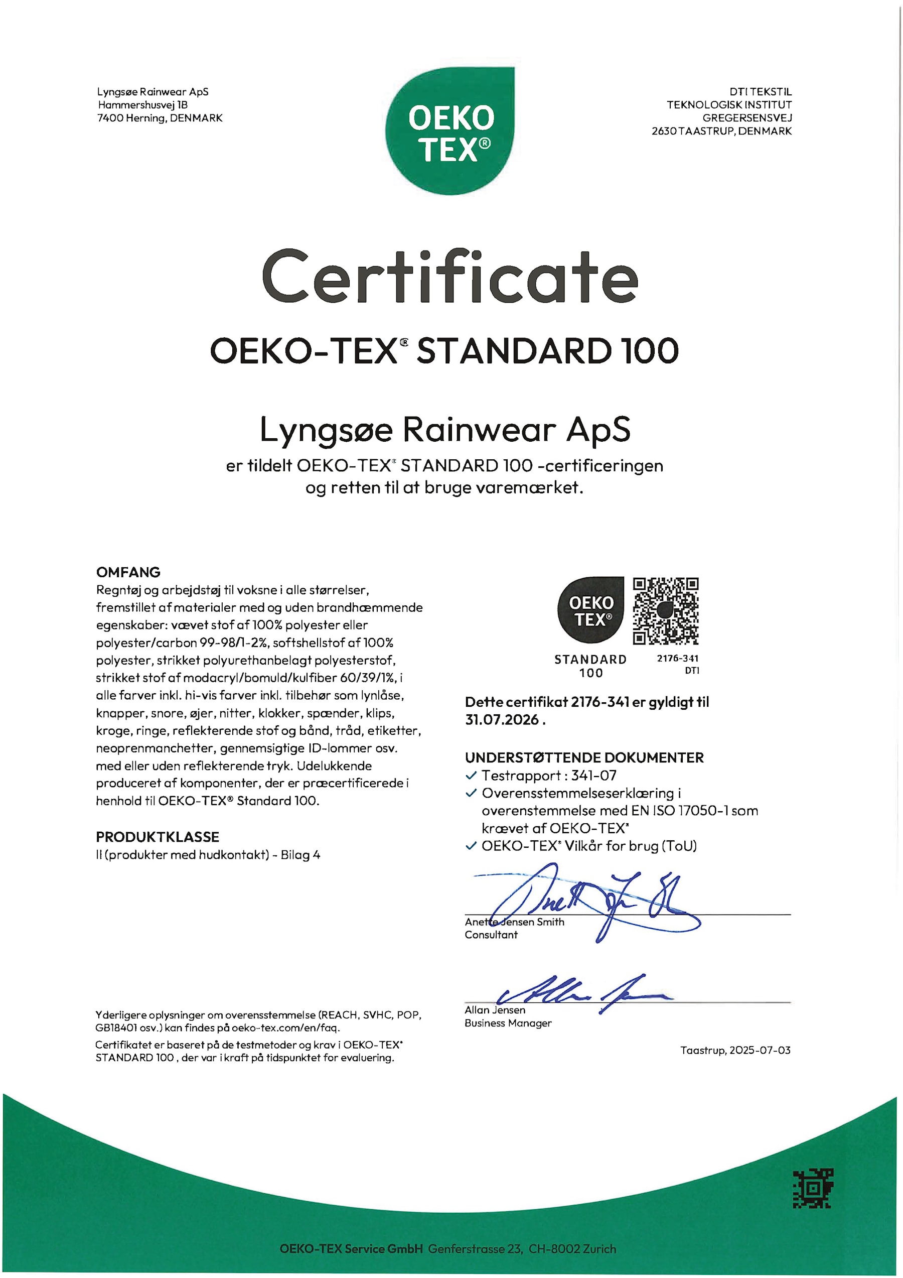 Ved at opnå STANDARD 100 by OEKO-TEX® certificeringen viser Lyngsøe vores engagement i bæredygtige og miljømæssigt ansvarlige praksisser.