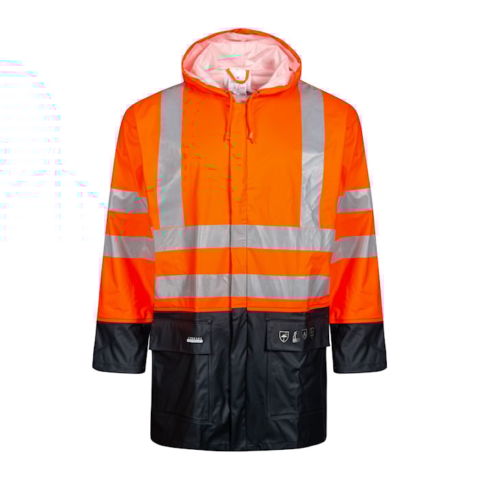 - Feste Kapuze mit Kordelzug, versteckt im Kragen