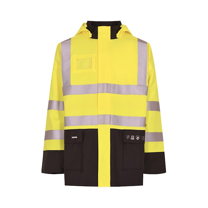 - Große Kapuze, die auch über Helme passt